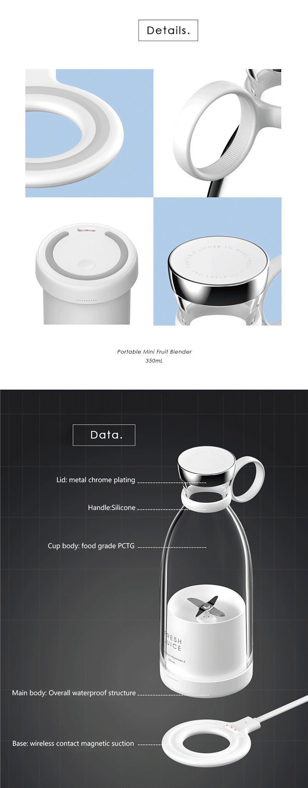 - The mini blender is easy to carry like a water bottle, can hold 350ml of juice, weighs only 490g, has a beautiful appearance.It can also be used as a water cup, no need to remove the motor, easy to carry. It is suitable for home, work, picnic,school Gym or travel