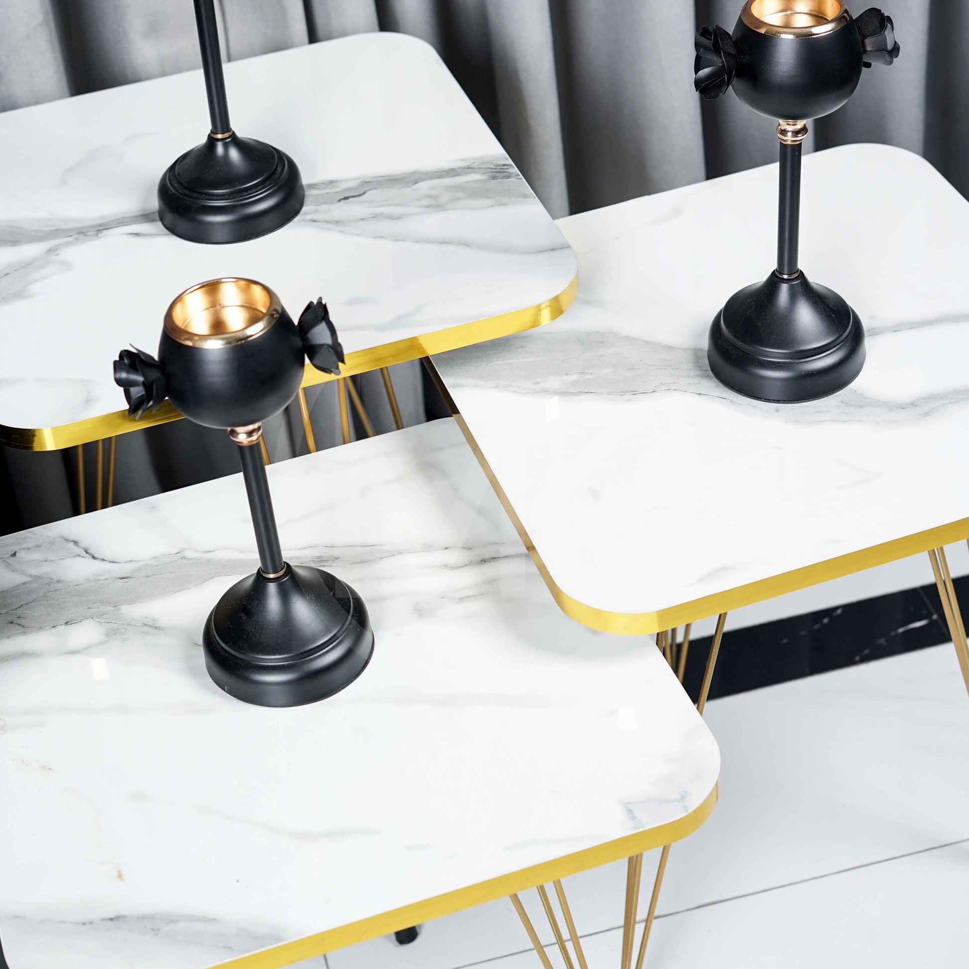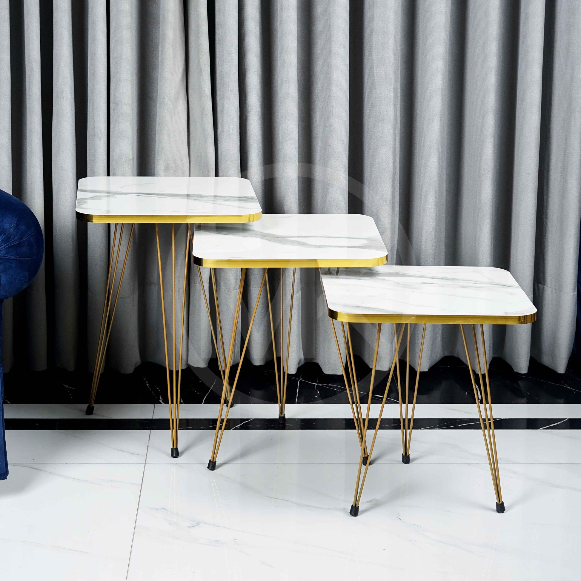 Elevate your living space with this stylish set of nesting tables, perfect for complementing any modern Pakistani interior. Each table features a sleek, high gloss MDF top, offering a sophisticated, polished finish that brings a touch of luxury to your décor. The sturdy metallic frames are coated with advanced Stormic Pro technology, providing exceptional durability and a refined, contemporary look. These versatile nesting tables are ideal for living rooms, bedrooms, or offices, offering functional surfaces for décor display or everyday use while saving space with their smart, stackable design. Crafted for the modern home, these nesting tables are available with nationwide delivery in Pakistan.